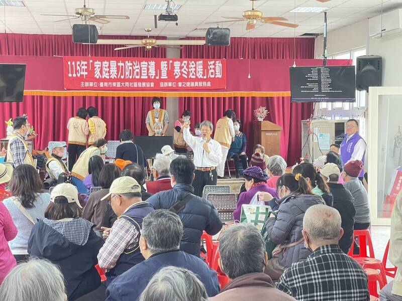 台南東區大同社區發展協會舉行寒冬送暖活動、關懷社區低收弱勢家庭。(大同社區發展協會提供)