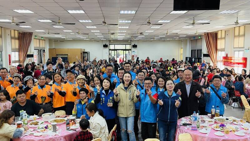 台南永康二路元帥慈善發展協會與南市議員曾之婕、李中岑服務處,共同邀請東區弱勢家庭、獨居老人及腦麻之友協會等社福團體,在東區和平里活動中心圍爐呷辦桌。(曾之婕服務處提供)