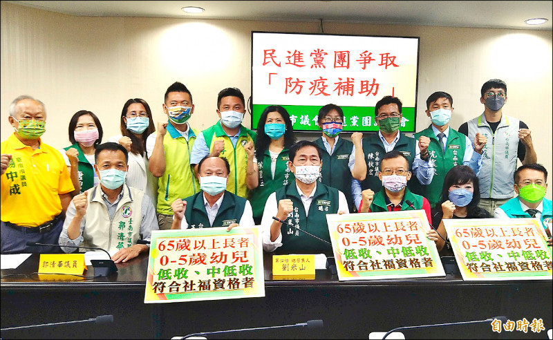 民進黨團呼籲市長黃偉哲,針對長者、幼兒、經濟弱勢和具有其他社會救助資格者發放「防疫補助」。(記者蔡文居攝)