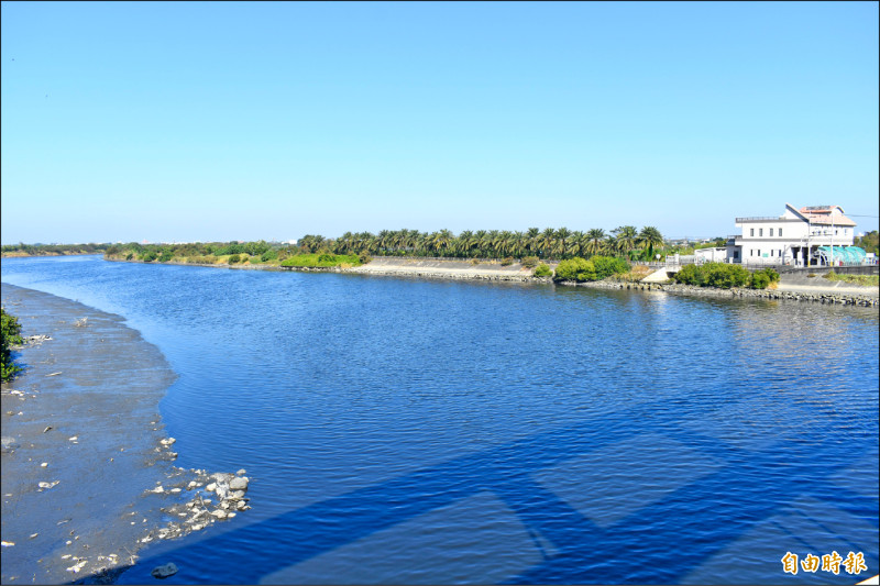 將軍溪本流河川完成整治,遠處為學甲華宗抽水站。(記者楊金城攝)
