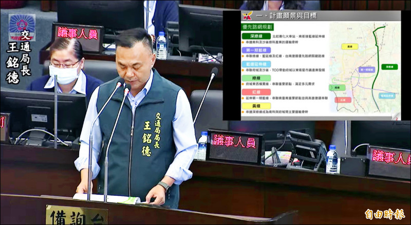 對於議員關注財務狀況,王銘德說,台南捷運優先路網共規畫六條路線,有三條完成可行性研究在交通部審查,加上深綠線總經費粗估約三千億元,後續將依工程進度需求,與財主單位根據市府財政狀況排列分年編列。