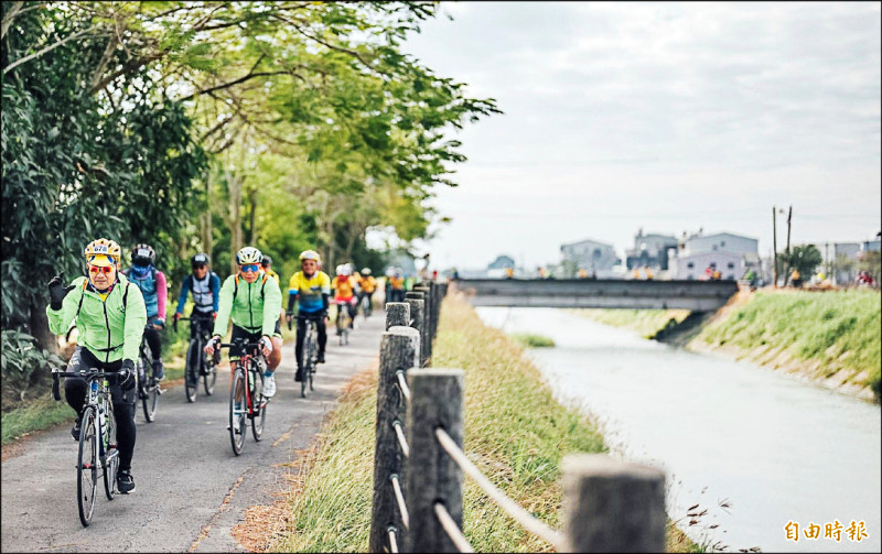 環騎5COOL騎行烏山頭水庫、嘉南大圳水圳之路。(記者楊金城攝)