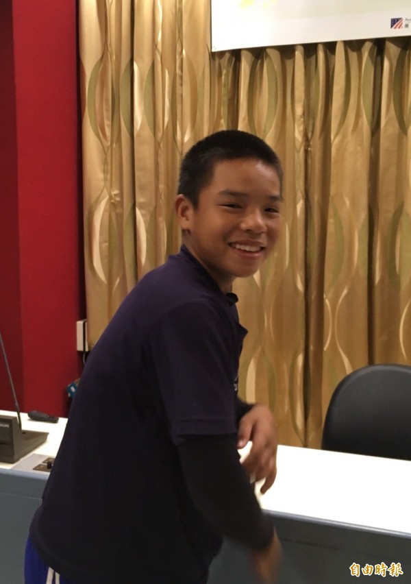 花蓮三民國中學生黃偉華的夢想是未來能打進美國職棒大聯盟,今天在台師大記者會中開心表示,英文學習好一點,又更能往自己的夢想邁進一步。(記者林曉雲攝)