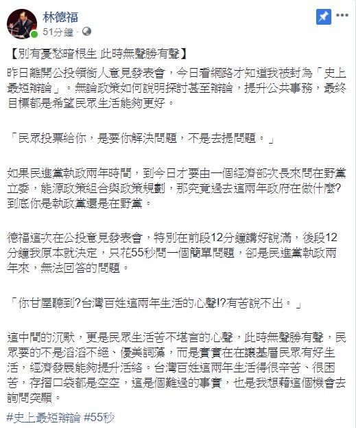 回應55秒「史上最短辯論」 林德福:此時無聲勝有聲