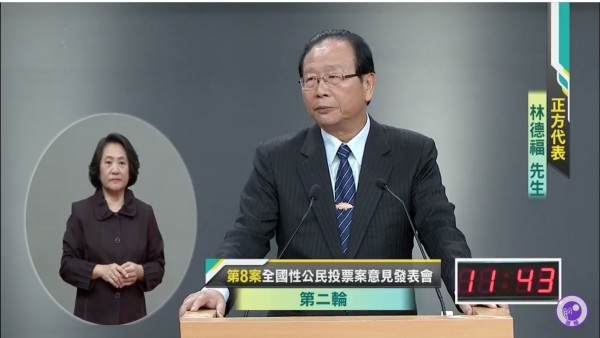 日前針對公投第8案的電視辯論上,國民黨立委林德福面對反方的提問,僅說「民眾心聲你有聽見嗎?」3次後就沉默不語,歷時55秒,被譏「史上最短辯論」,今林德福辯稱:「此時無聲勝有聲」。