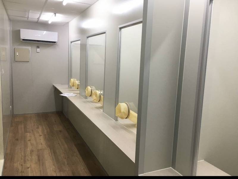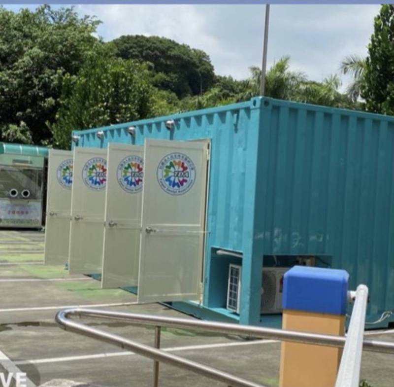 台北市牙醫師公會主動捐贈「行動貨櫃隔離檢疫照護站」,給北市聯合醫院陽明院區,共組裝4條動線,採檢過程更安全舒適。(台北市牙醫師公會)