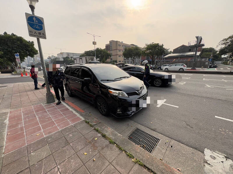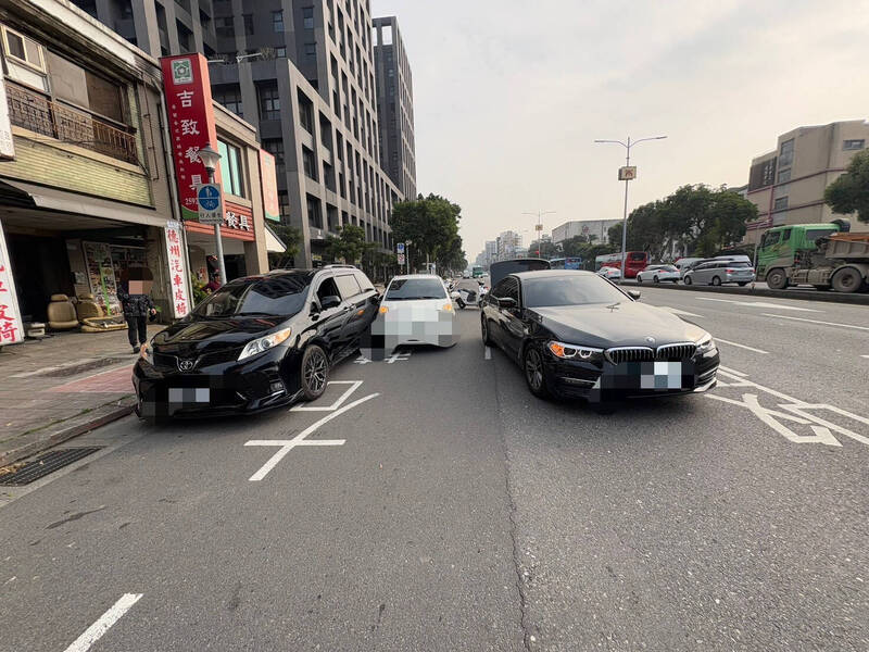 兩車擦撞後,白車又撞上另外一輛停放在路旁的轎車,整起車禍共有3輛轎車受損,但沒有人員受傷。