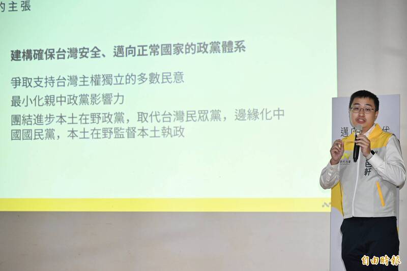 時代力量祕書長林邑軒簡報時力未來路線,目標取代民眾黨、邊緣化國民黨。(記者陳逸寬攝)