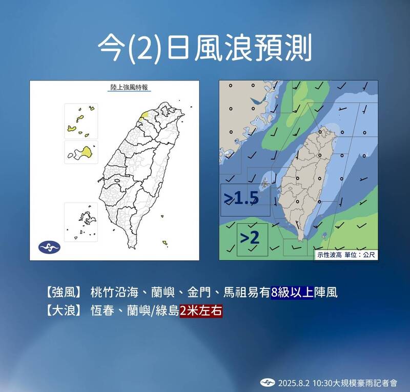 今天風浪預測。(氣象署提供)