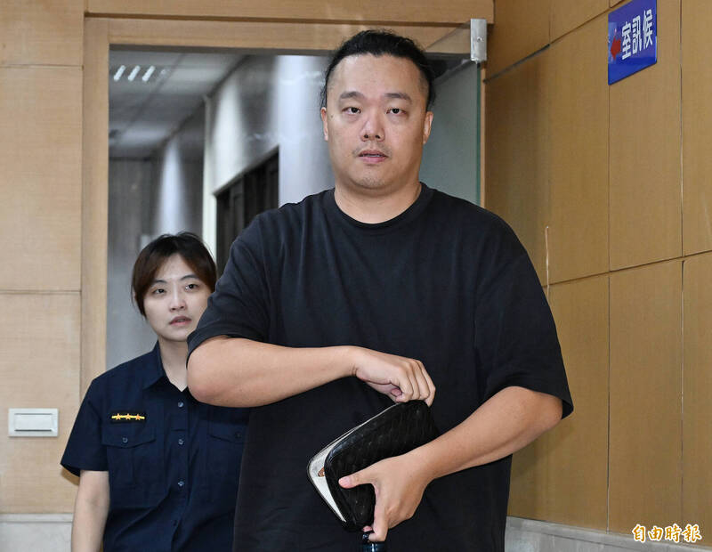 李瑞章之子李聿修(前)訊後50萬元交保。(記者廖振輝攝)