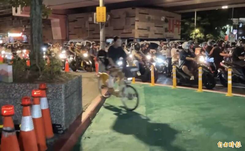 人行道與路面有高低差,腳踏車騎士未留意直行。(記者董冠怡攝)