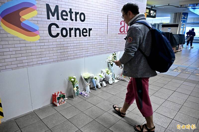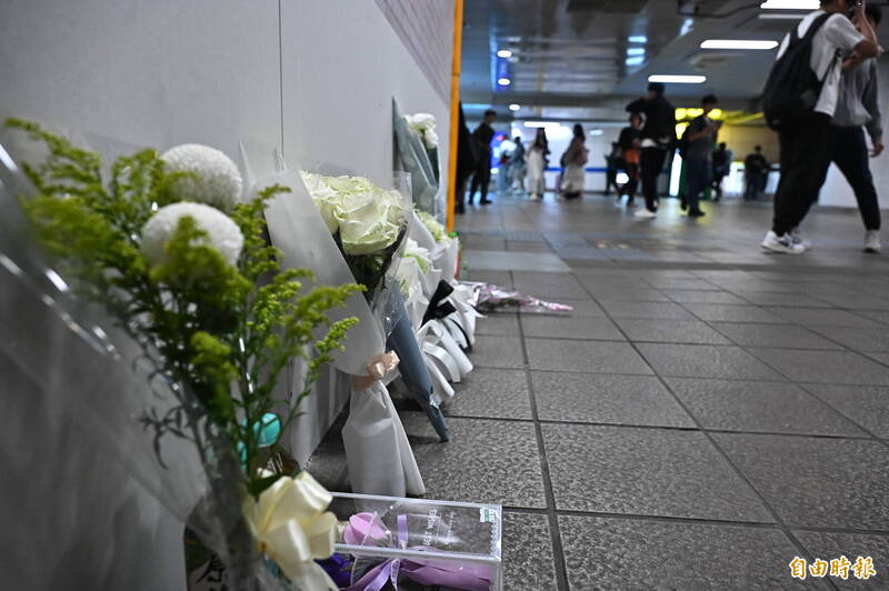 民眾今前往捷運台北車站M7出口獻花,悼念無辜死者。(記者塗建榮攝)