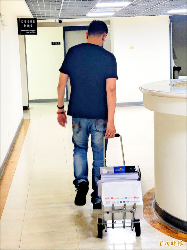 台北市政府提供給北市議會「京華城容積違失案」專案調查小組的資料有十幾大本,必須靠手推車運送。(記者何玉華攝)