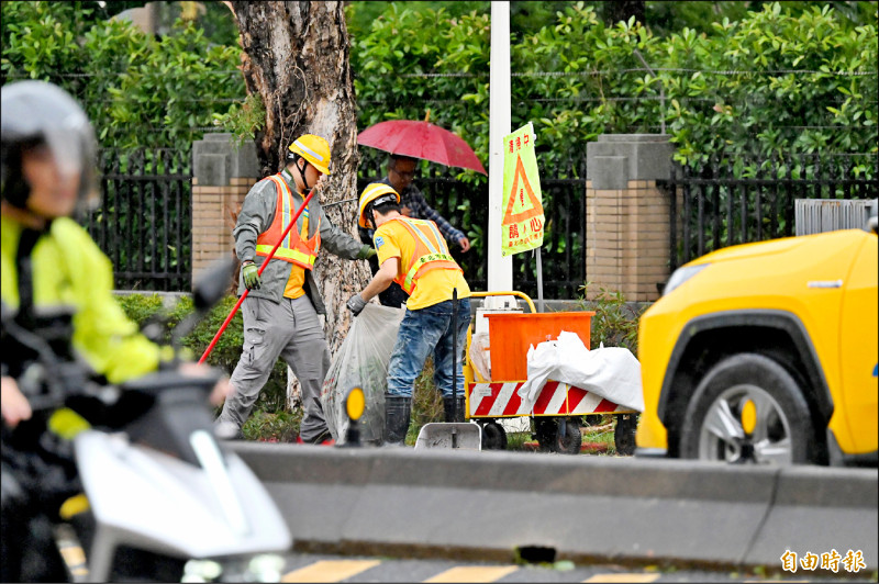 颱風離境,環保局清潔隊員昨日一早就趕忙整理台北市容。(記者叢昌瑾攝)