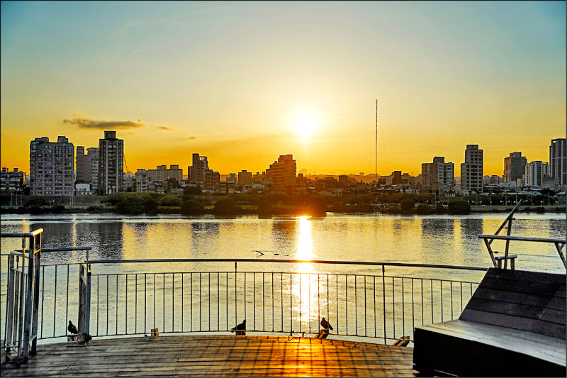 迪化污水處理廠休閒運動公園跨堤景觀平台,可賞夕陽看煙火。 (台北市衛工處提供)