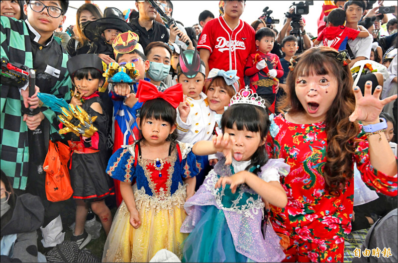 台北市天母商圈發展協會舉辦「天母搞什麼鬼」萬聖節嘉年華,現場大小朋友變裝互動、一起搞鬼。(記者林正堃攝)