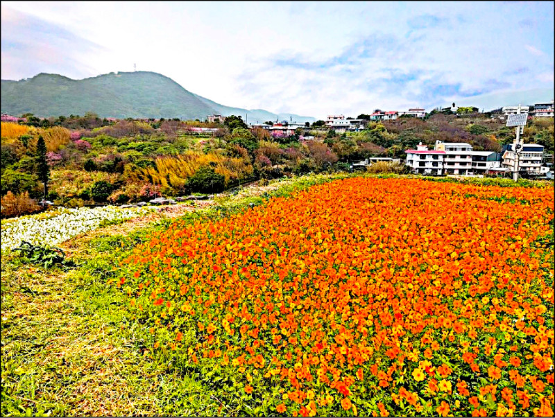 鵝尾山水梯田花海,近日進入最佳觀賞期。(北市大地處提供)