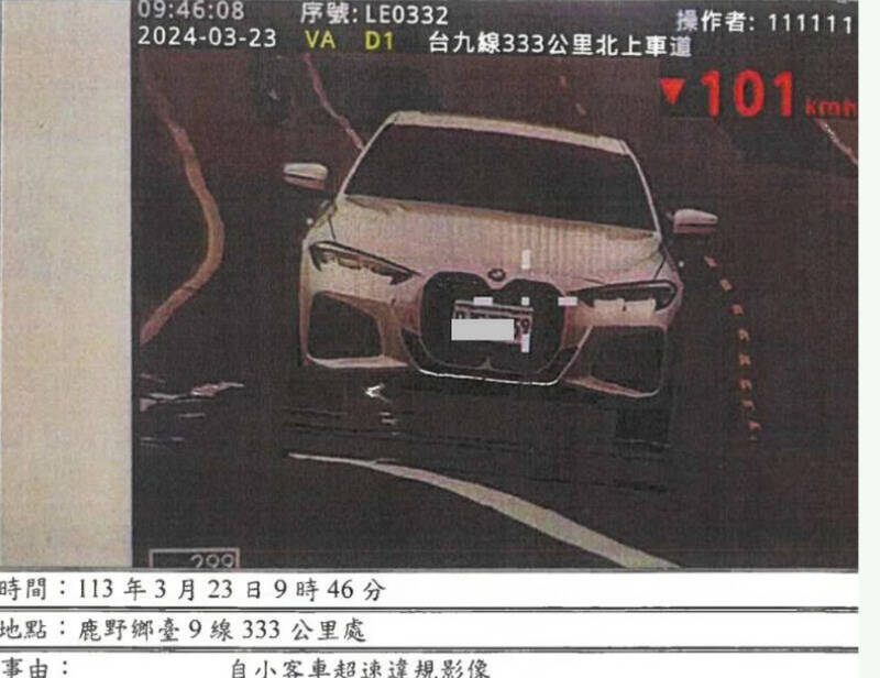 被台東警方測速101公里舉發的違規車輛影像。(記者黃明堂翻攝)
