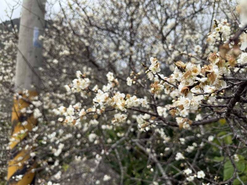 台東縣今年梅花花況不佳,因為許多梅樹被去年颱風打壞。(民眾提供)
