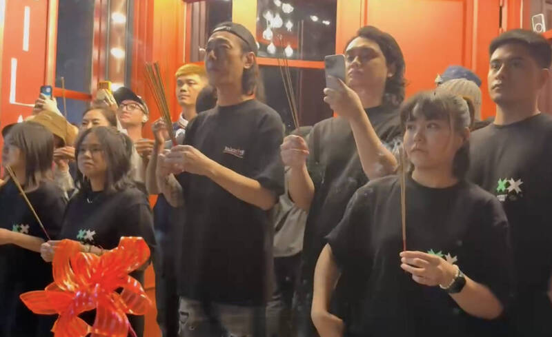 Sam帶領一眾員工祭拜。(民眾提供)