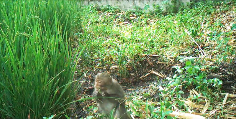 成功鎮都歷水田紅外線相機拍到猴子啃稻。(記者黃明堂翻攝)