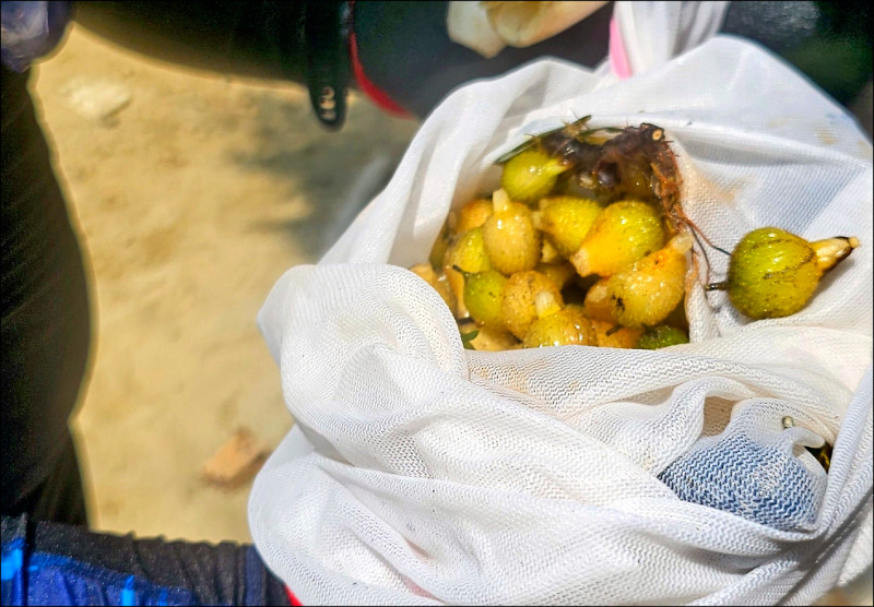 推動台灣本島海草復育,浮潛志工在屏東車城海口採集到海草結果,待發芽後種到台東富山海中。(水試所東部中心提供)