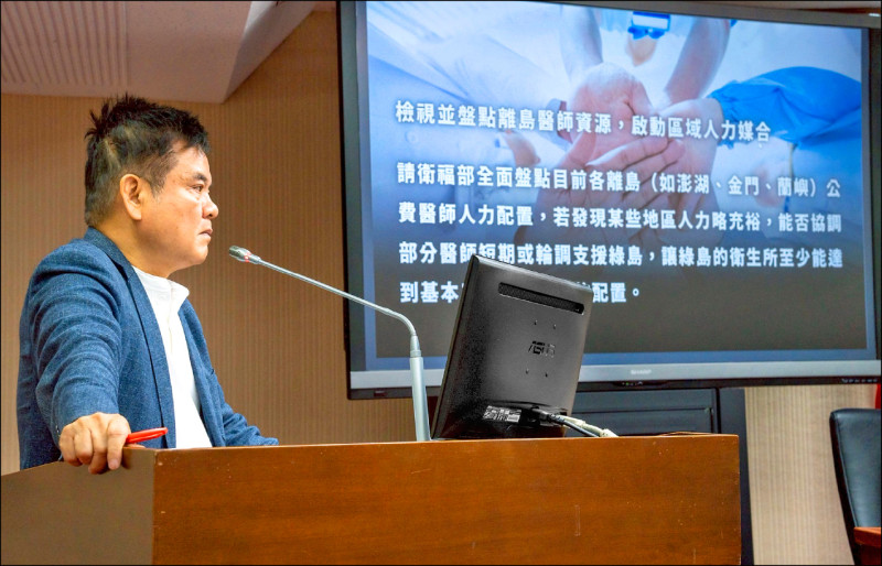 立委莊瑞雄要求衛福部全面盤點離島公費醫師人力,啟動媒合與輪調支援機制,整合澎湖、金門、蘭嶼等離島地區醫師資源,若有相對充裕地區,優先協調支援綠島。