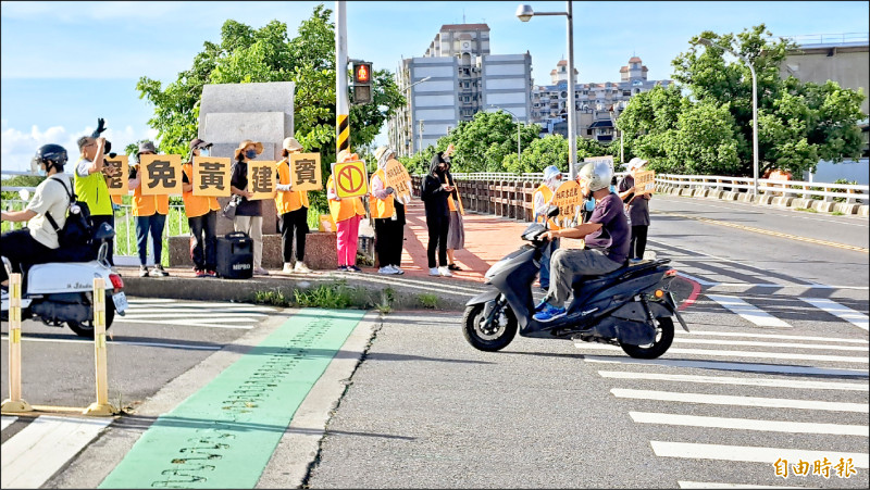 台東罷團昨站在豐里橋宣講,呼籲罷免立委黃建賓投下同意票。(記者黃明堂攝)