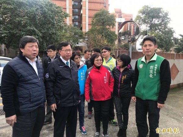中壢幼兒園六二分班將轉型開辦非營利幼兒園,鄭文燦等人到場會勘。(記者李容萍攝)