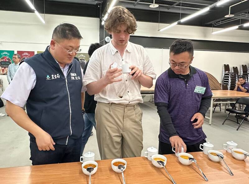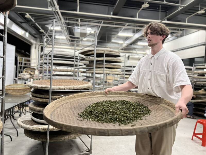 來自法國巴黎-薩克雷大學生物系2年級的Anton Tourtier,成了本屆桃園市東方美人茶製茶技術競賽焦點之一。(桃市府農業局提供)