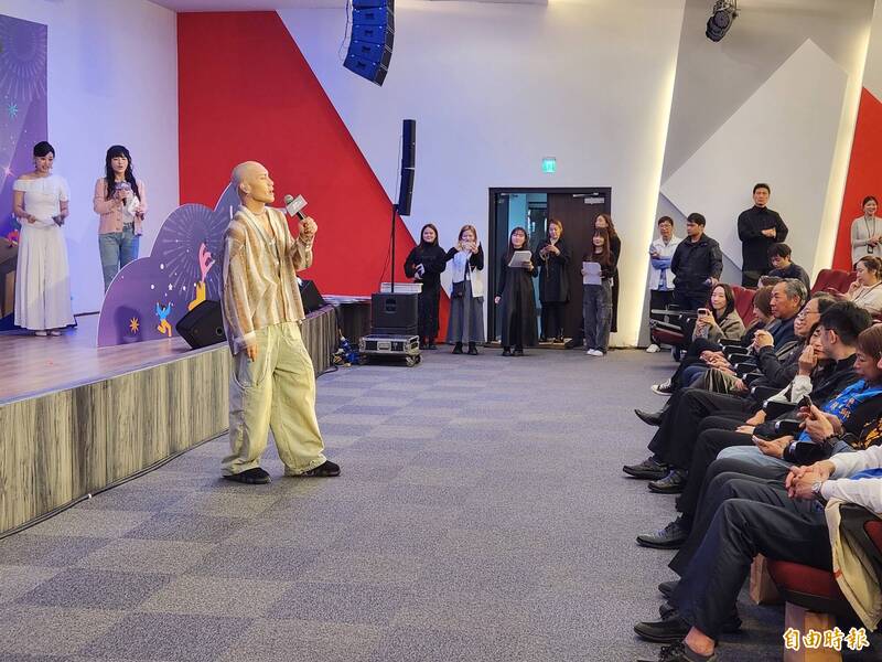 藝人「YELLOW黃宣」(中)在記者會上帶來精彩表演。(記者周敏鴻攝)