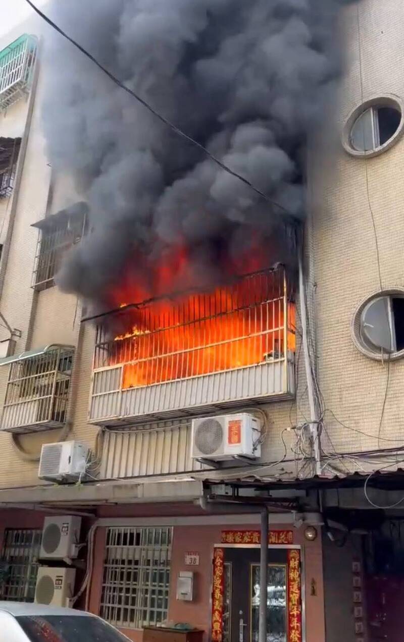 桃園市龜山區幸福九街1處集合住宅2樓今早8點半左右失火,消防單位獲報動員灌救,於9點10分撲滅。(圖由桃園市消防局提供)