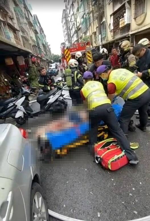 桃園市龜山區幸福九街1處集合住宅2樓今早8點半左右失火,消防單位獲報動員滅火,1女子獲救出時已無呼吸心跳,立即被送醫急救。(圖由桃園市消防局提供)