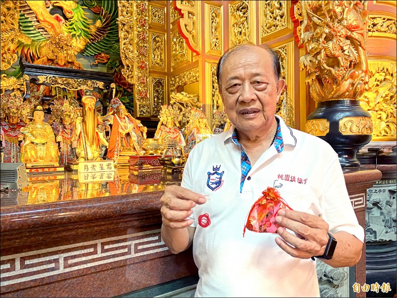 信徒可擲筊向鎮撫宮月老祈求紅線,圖為桃園鎮撫宮執行長張進益。(記者魏瑾筠攝)