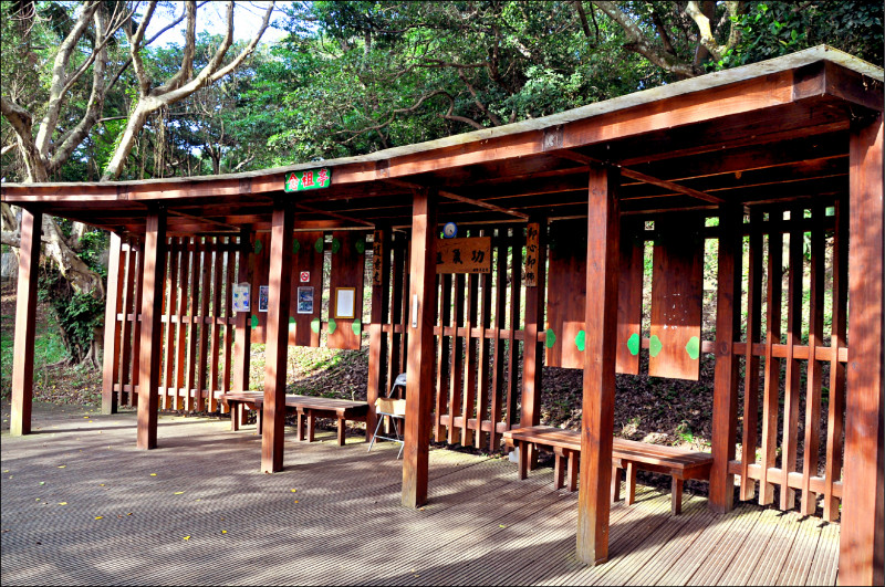蔡安然祖父的山寮旁,新建了念祖亭與念祖寮林間休憩區作為紀念。(記者周敏鴻攝)