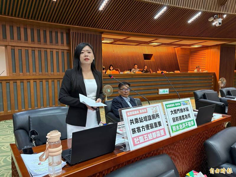 民進黨籍宜蘭縣議員黃惠慈(左)、簡松樹要求縣政府,應攜手立委陳俊宇向中央爭取一般性補助款原額核定。(記者王峻祺攝)