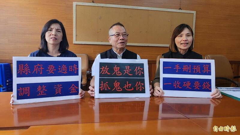 國民黨議會黨團要求民進黨停止卸責,還錢於民,不要濫扣補助款。(記者游明金攝)