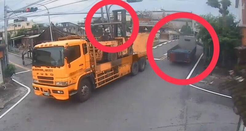宜蘭貨車載堆高機扯歪電線 路過車驚險躲過倒塌電桿