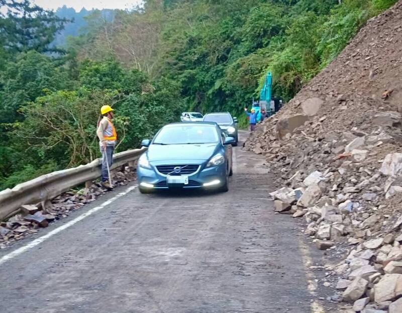 施工團隊清除崩塌處落石,下午2點恢復單線雙向通行,讓滯留園區遊客順利返家。