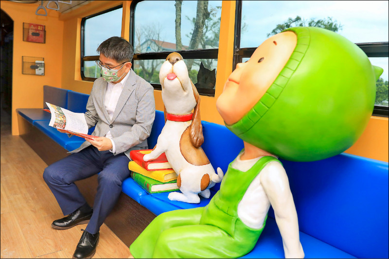 宜蘭市李科永紀念圖書館,與幾米在地元素友善結合,讓幾米繪本主角成為伴讀角色。 (宜蘭市公所提供)