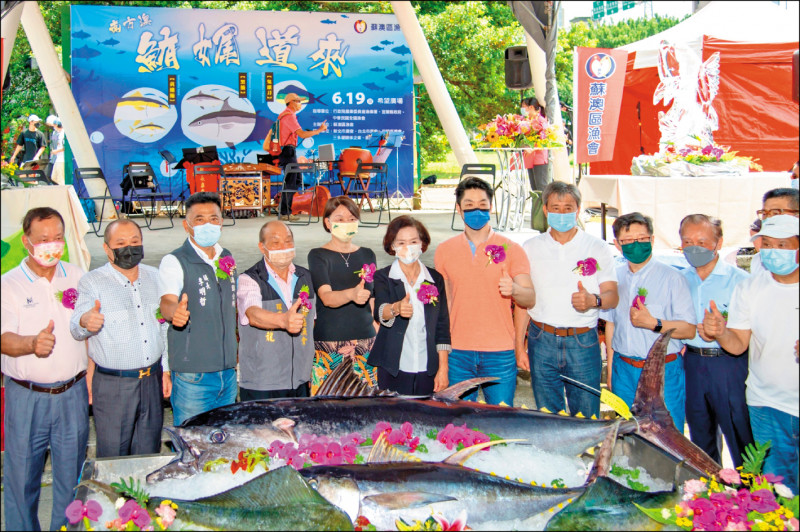 漁業署代理署長范美玲、宜蘭縣長林姿妙、蘇澳鎮長李明哲、蘇澳區漁會三巨頭,連袂出席「南方澳鮪娓道來」活動,現場有黑鮪分解秀,並提供黑鮪生魚片丼飯、黑鮪味噌湯供大家品嘗,另也一併促銷蘇澳地區大宗魚貨黃鰭鮪及鬼頭刀。