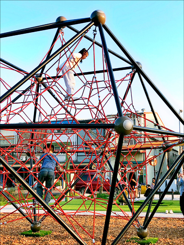 冬山鄉永美公園將在今天下午開放使用,圖為園區的攀爬網遊憩設施。(冬山鄉公所提供)