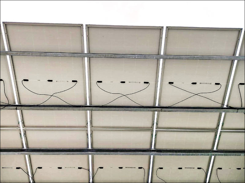 三星鄉立綜合運動場停車場提供業者新建光電設施,本月上旬完工。陳文昌指出,宜蘭多雨,光電設施屋頂的太陽能板之間留有縫隙,如果下雨就會漏水,避雨功能大打折扣,加上造型呆板,影響運動場整體景觀。