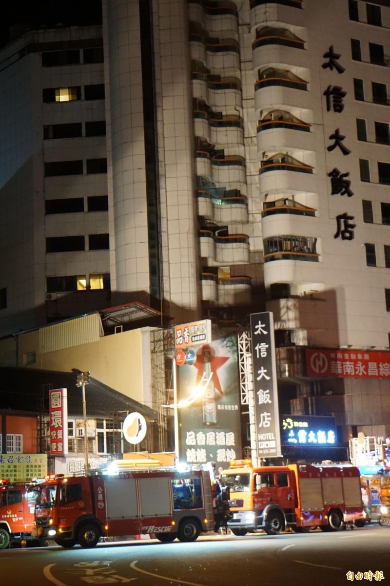 消防局表示,今天凌晨共出動11輛消防車及21名消防人員,由於傳出火警的是高樓建築,內有附設大飯店,所以人員特別謹慎,現場可能因武漢肺炎因素,中客無法再入境,所以住宿的人員相對較少,所以沒有人員受困,也沒有旅客大量撤出的問題。