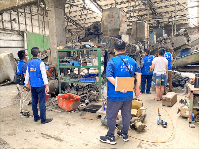 雲林縣環保局昨天稽查發生火災的利強環保科技公司,發現有多項違規,依法告發並要求停止進料。(雲林縣環保局提供)