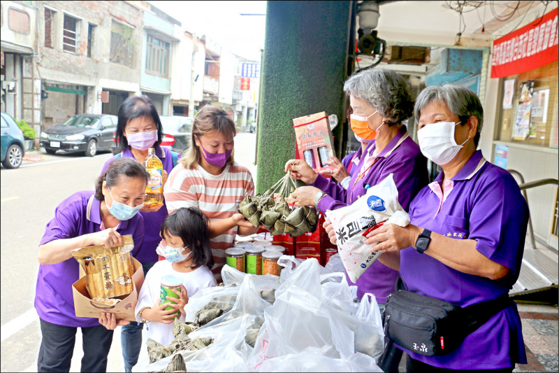 國內疫情嚴峻,且物價上漲,雲林家扶莪馨會志工愛心不縮水,購買六百顆肉粽昨天「快閃」送給家扶中心沿海地區三十戶扶助家庭,還有雞肉鬆、食用油及醬油、白米及手工蛋捲禮盒,令扶助戶足感心。(圖文︰記者黃淑莉)