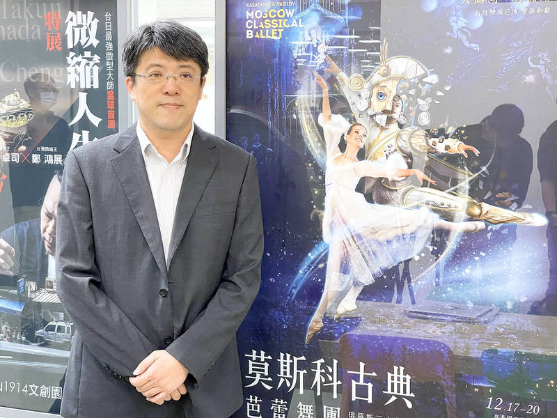 UdnFunLife chairman Lee Yen-fu stands in front of a poster for the Moscow Classical Ballet in Taipei on Wednesday. Photo: CNA