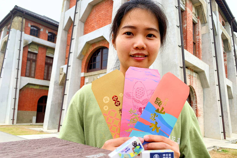 \\192.168.5.8\news\ok_retouch_folder\20210211\P01-210211-2a.jpg A woman holds up three types of lucky envelope being offered by the Tainan Shan Shang Garden and Old Waterworks Museum to those who purchase tickets to the museum between tomorrow and Sunday. Photo: CNA