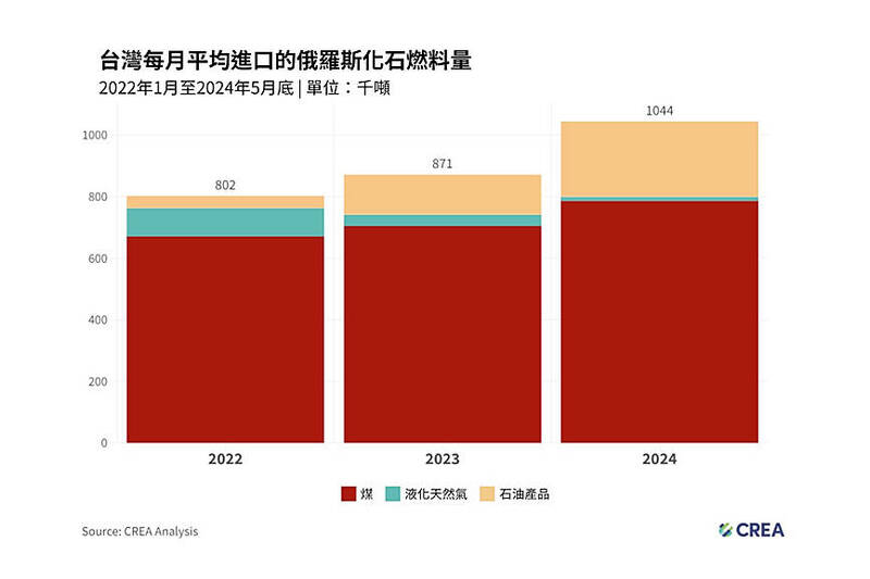 Taiwan’s reliance on Russian coal increased by 31 percent last year, a report released yesterday by the foundation in collaboration with the Centre for Research on Energy and Clean Air and civic group Ecodefense showed.