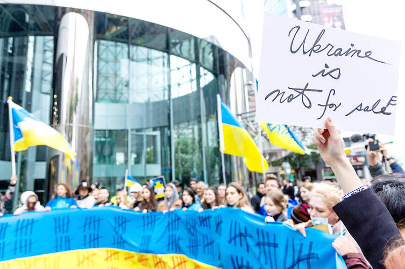 《TAIPEI TIMES》 Ukrainians, supporters protest Russian invasion